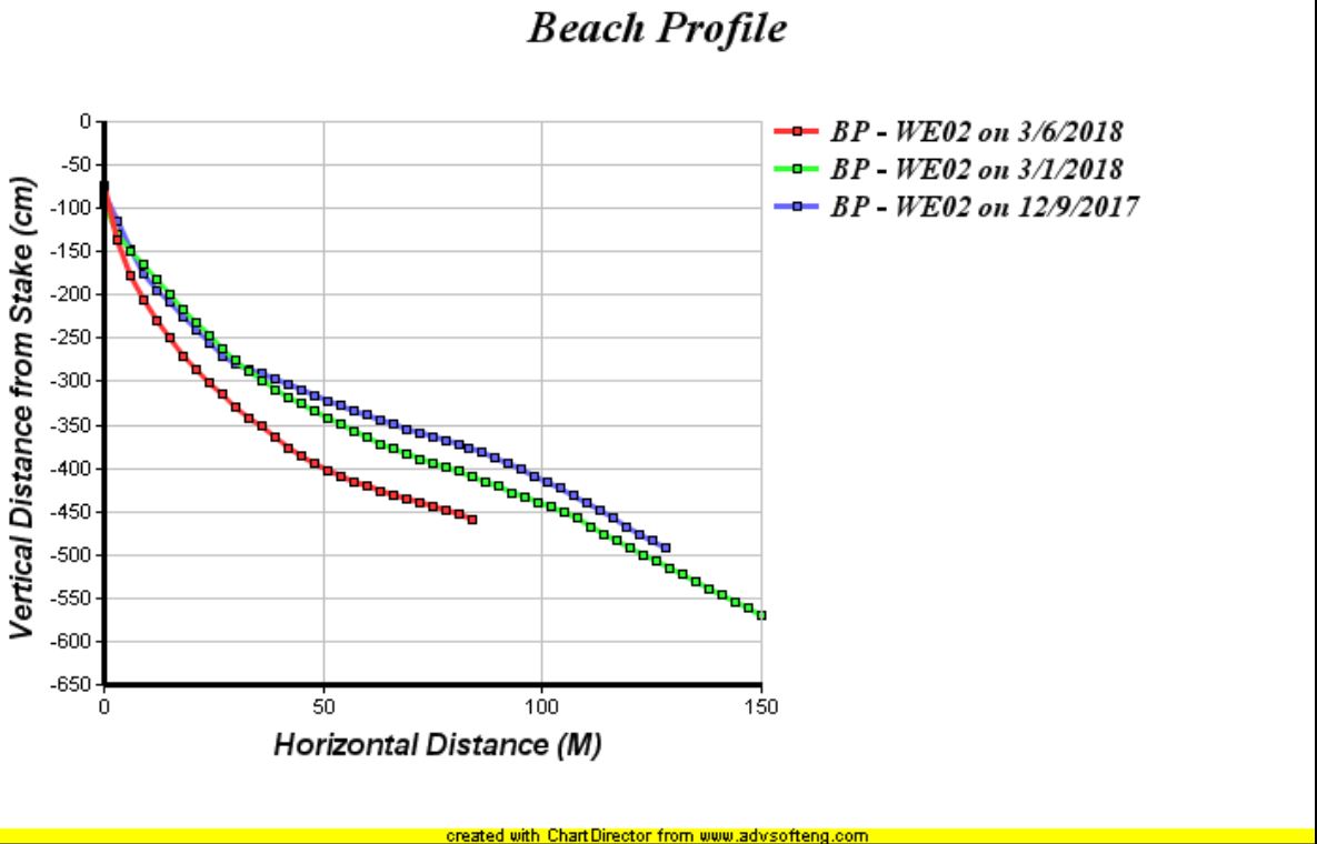 Stephen Dickenson, PhD of Maine Geological Survey has been keeping track of Wells Beach via their citizen volunteers that measure beach profiles once a month. Volunteers send photos and measure the beach elevations near Casino Point (WE02) and south of the south jetty (WE03) and at Laudholm Beach. Attached are some graphs showing the height of the beach. Thanks to collaboration and coordination with John Cannon at the National Weather Service in Gray, some of the teams are measuring before and after major storms if they can muster a team. The below pictures tell the story and are summarized below.